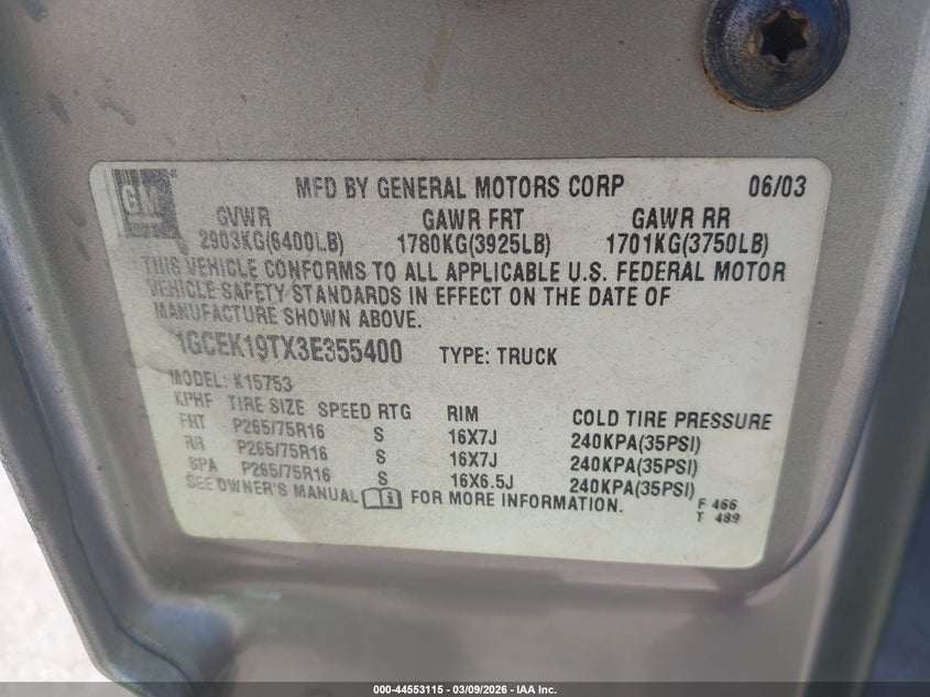 • 1GCEK19TX3E355400