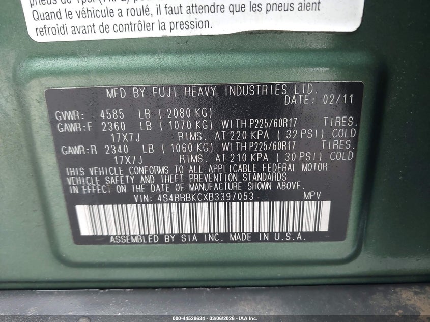 • 4S4BRBKCXB3397053
