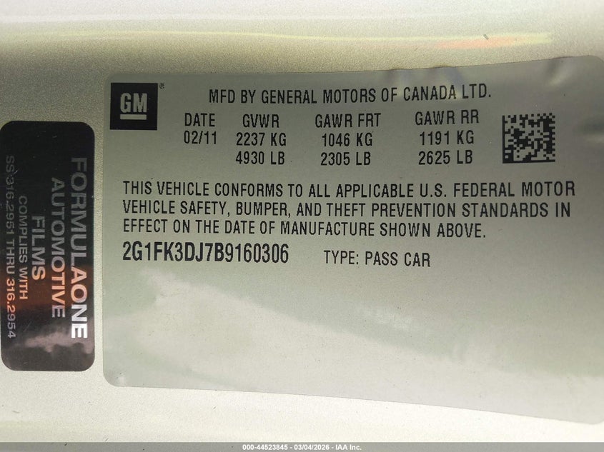 • 2G1FK3DJ7B9160306