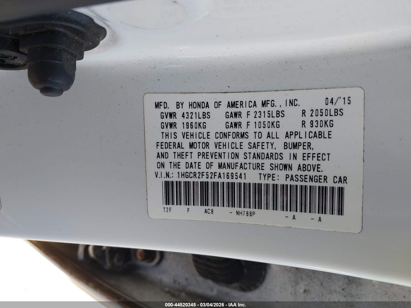 • 1HGCR2F52FA169541