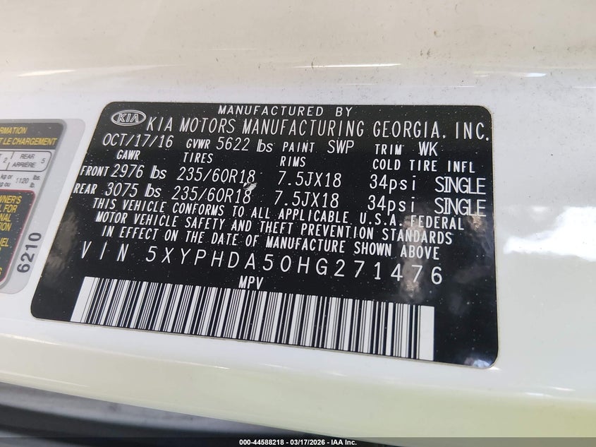 • 5XYPHDA50HG271476