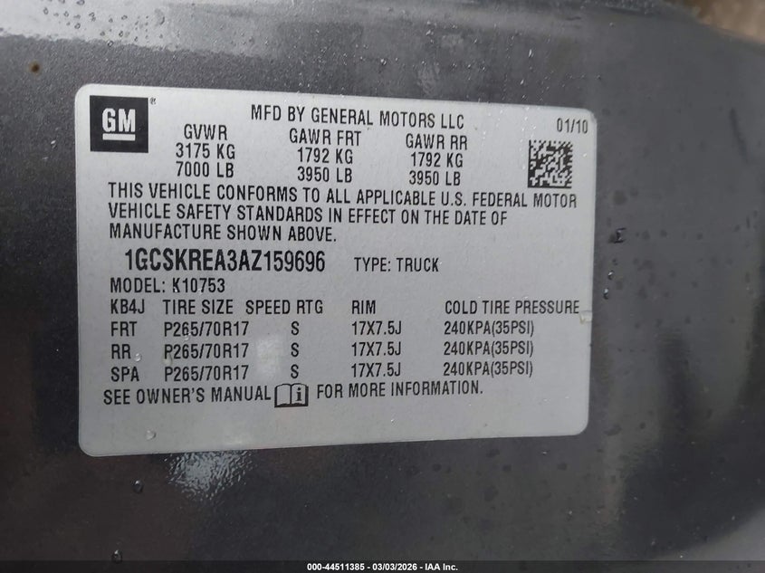• 1GCSKREA3AZ159696