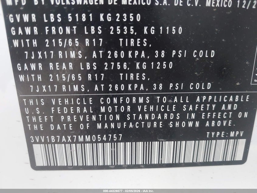 • 3VV1B7AX7MM054757