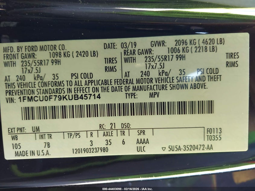 • 1FMCU0F79KUB45714