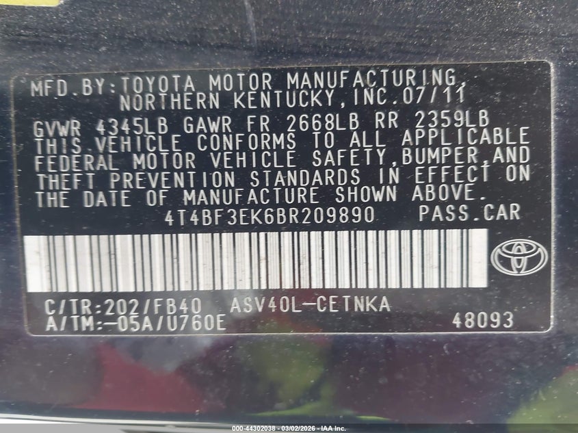 • 4T4BF3EK6BR209890