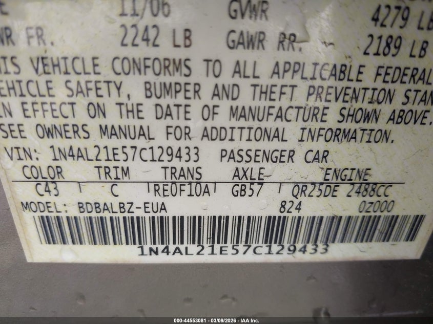 2007 NISSAN ALTIMA 2.5 S for Sale in Moss Point, MS