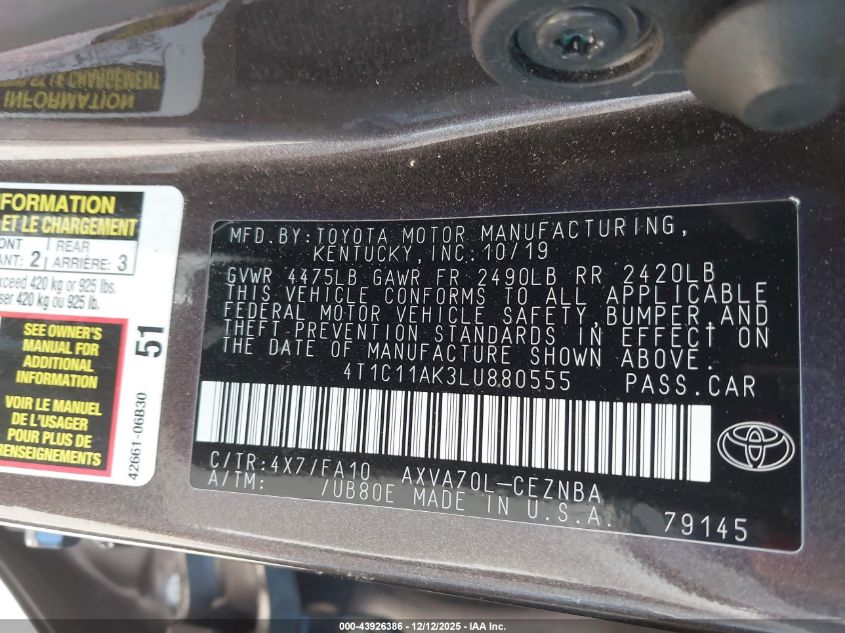 • 4T1C11AK3LU880555