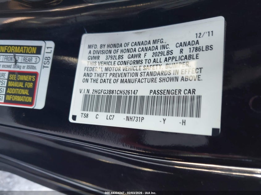 • 2HGFG3B81CH526147