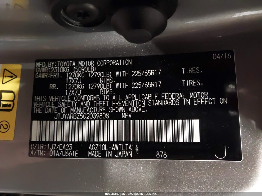 • JTJYARBZ5G2039808