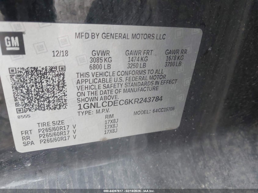 • 1GNLCDEC6KR243784