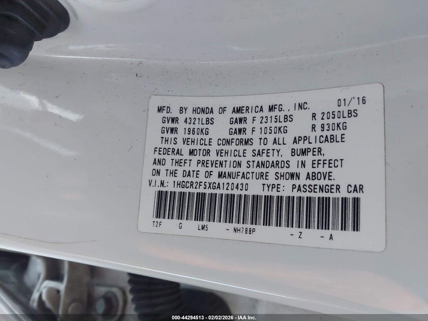 • 1HGCR2F5XGA120430