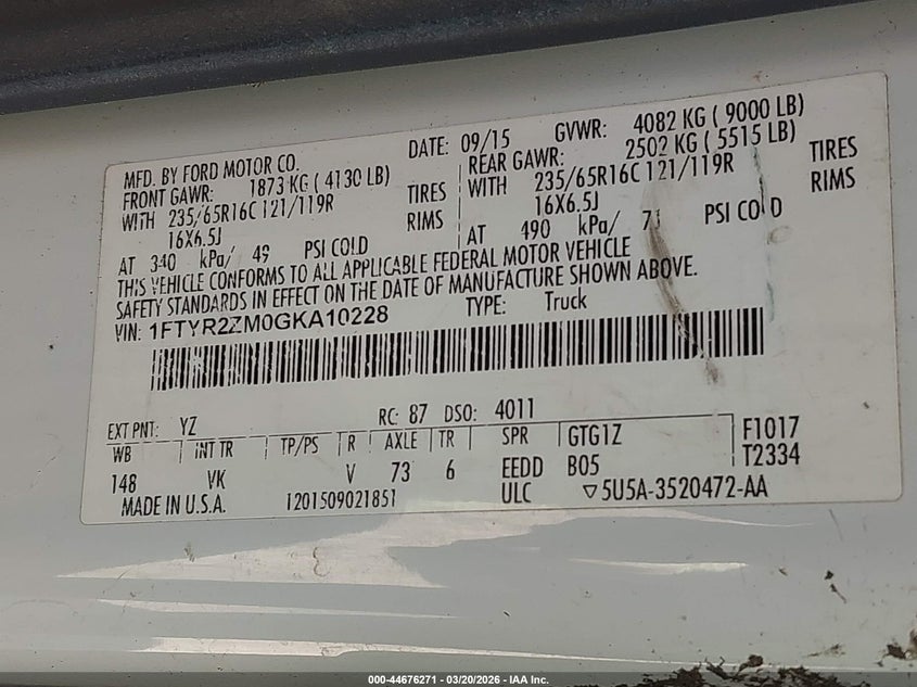 • 1FTYR2ZM0GKA10228