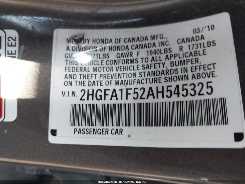 • 2HGFA1F52AH545325
