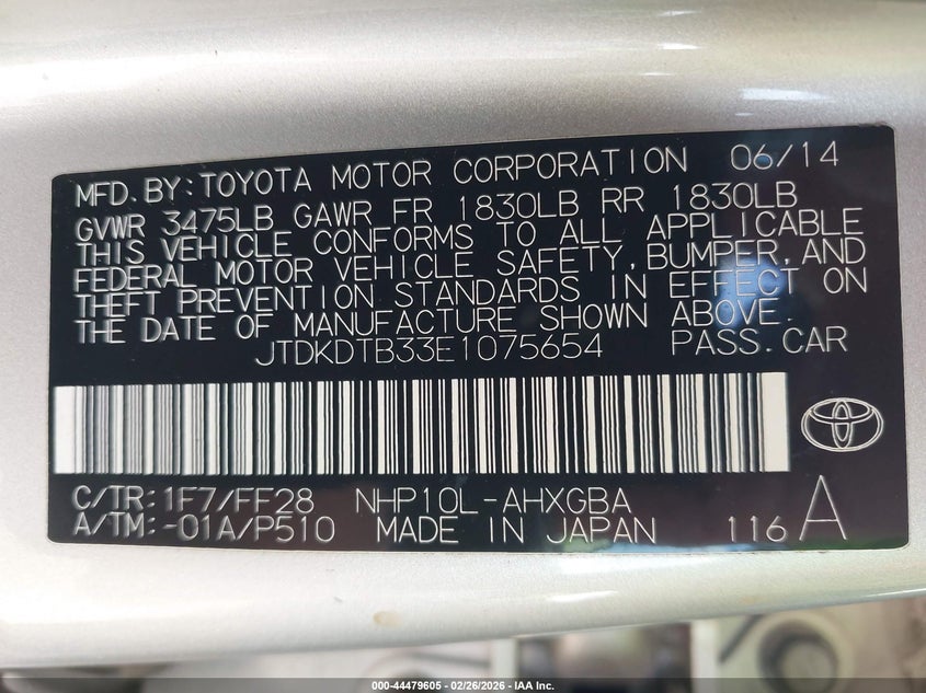 • JTDKDTB33E1075654