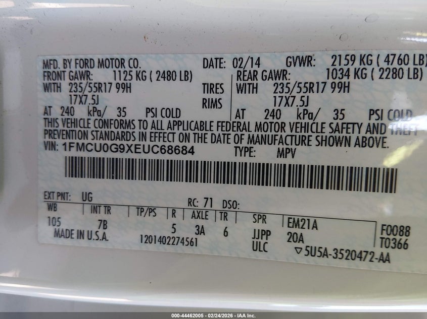 • 1FMCU0G9XEUC68684