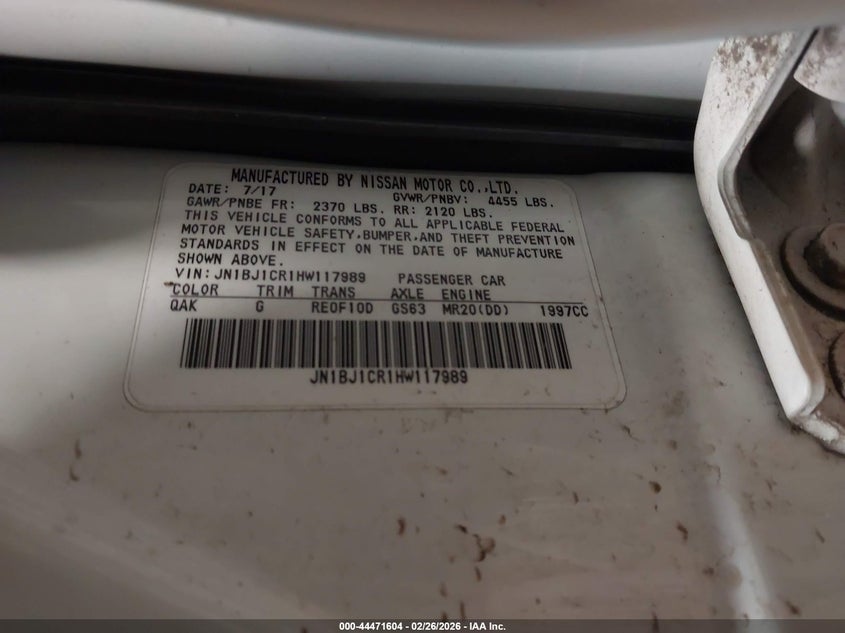 • JN1BJ1CR1HW117989