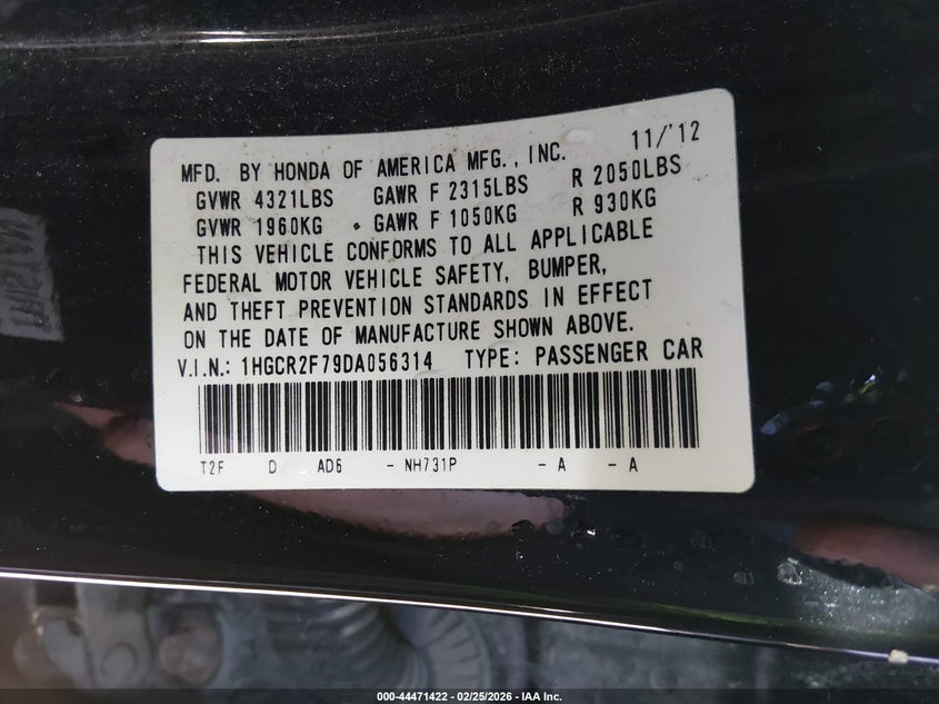 • 1HGCR2F79DA056314