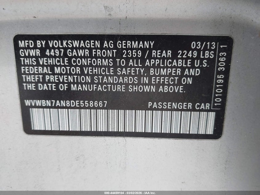 • WVWBN7AN8DE558667