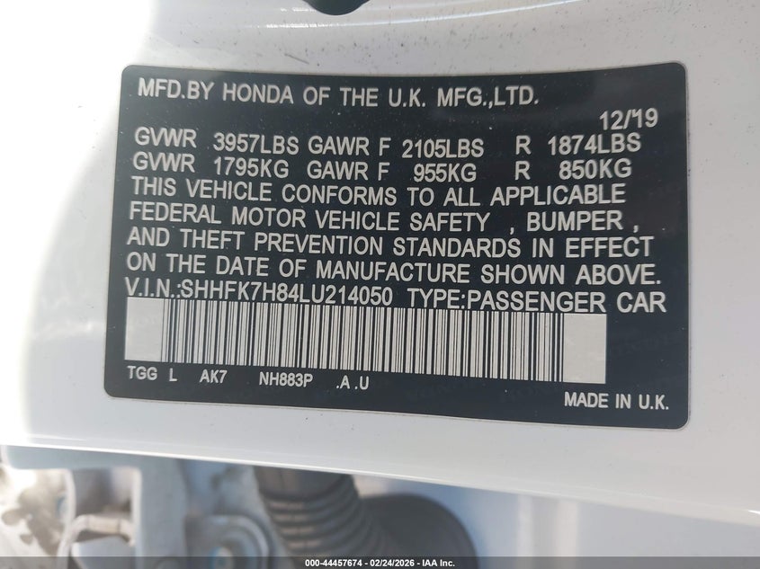 • SHHFK7H84LU214050