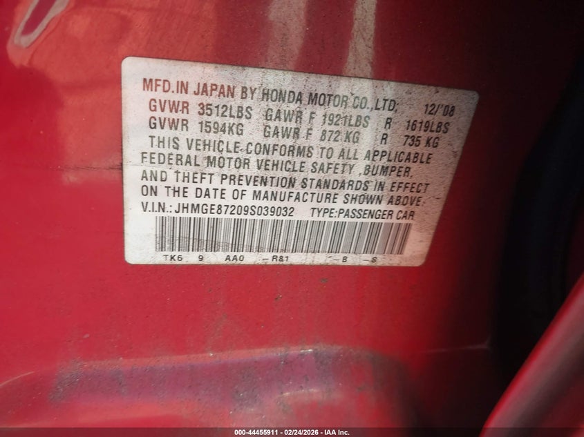 • JHMGE87209S039032
