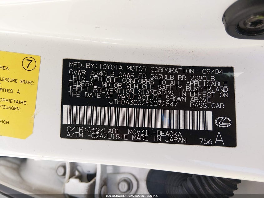 • JTHBA30G255072847