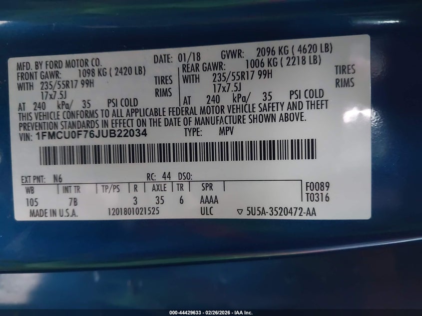 • 1FMCU0F76JUB22034