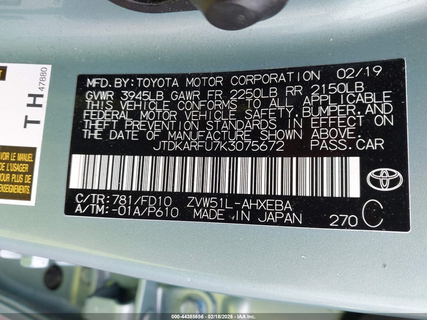 • JTDKARFU7K3075672
