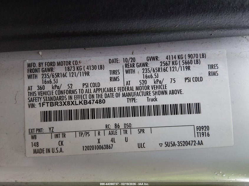 • 1FTBR3X8XLKB47480