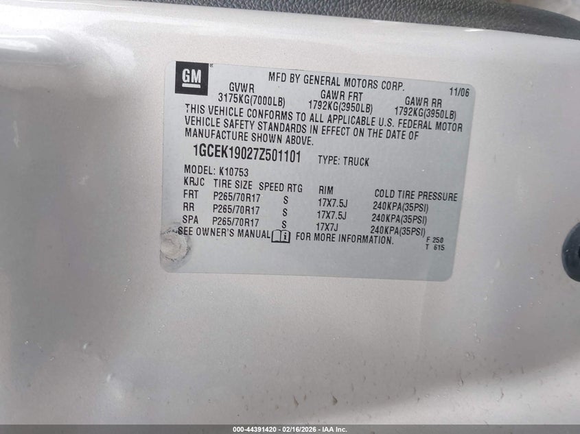 • 1GCEK19027Z501101