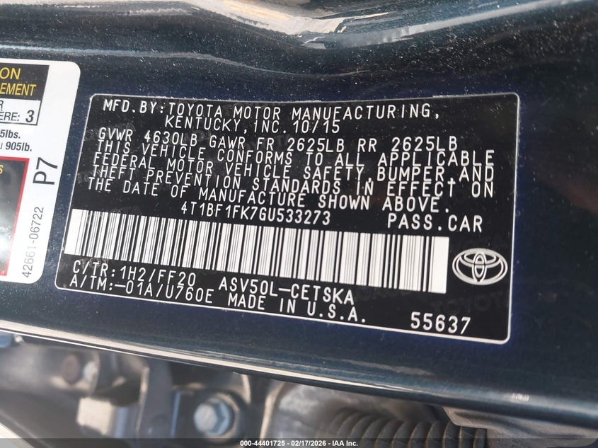 • 4T1BF1FK7GU533273