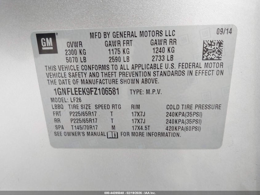 • 1GNFLEEK9FZ106581