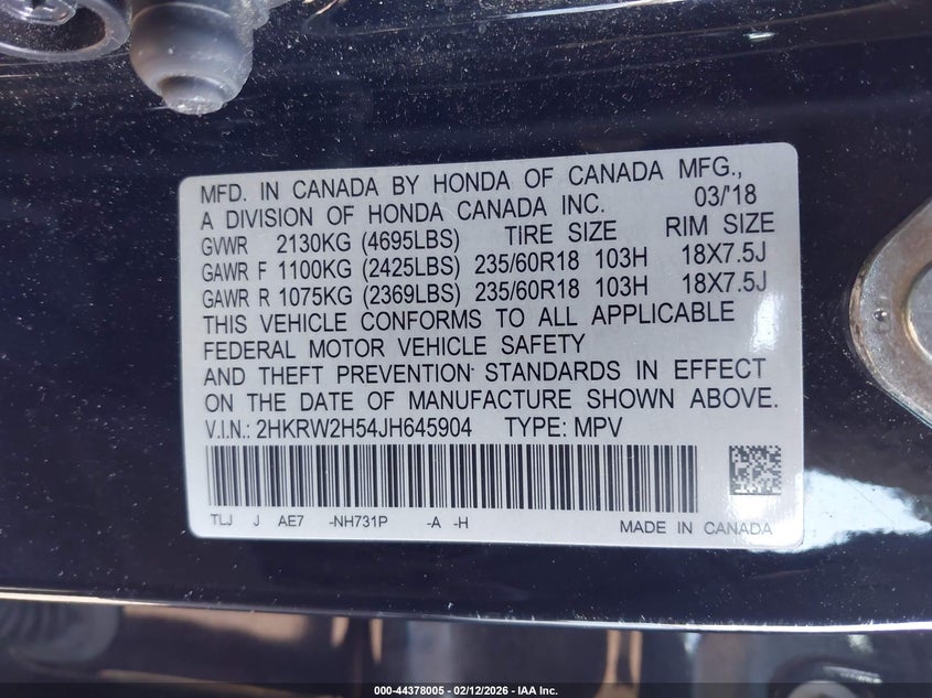 • 2HKRW2H54JH645904