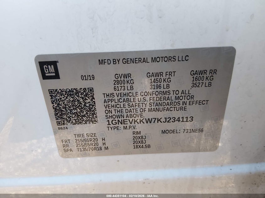 • 1GNEVKKW7KJ234113