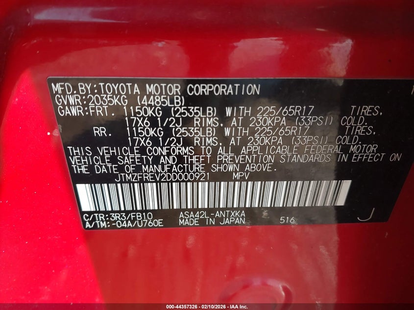 • JTMZFREV2DD000921