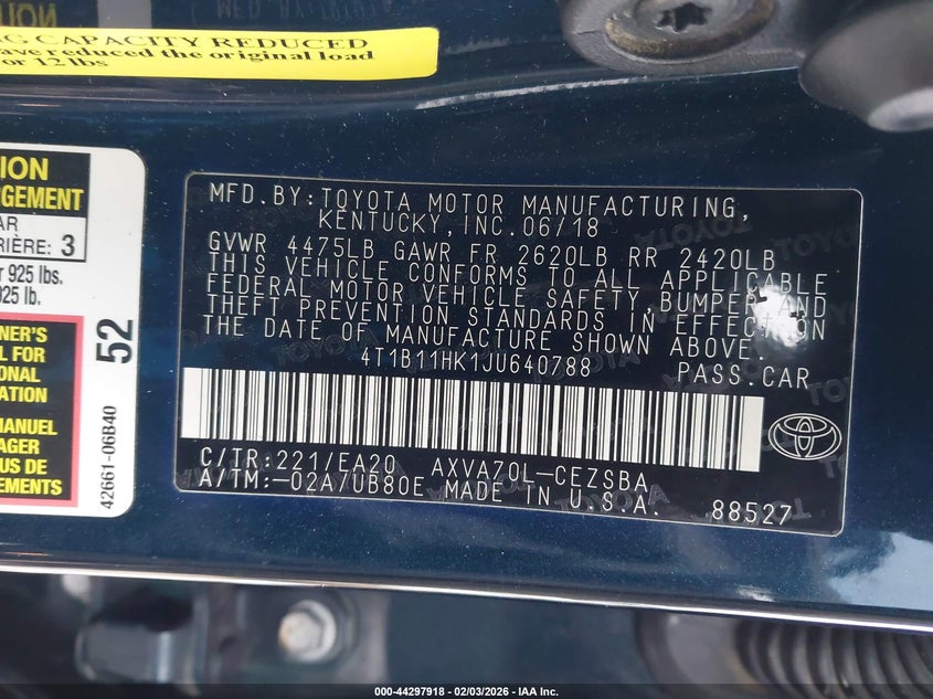 • 4T1B11HK1JU640788