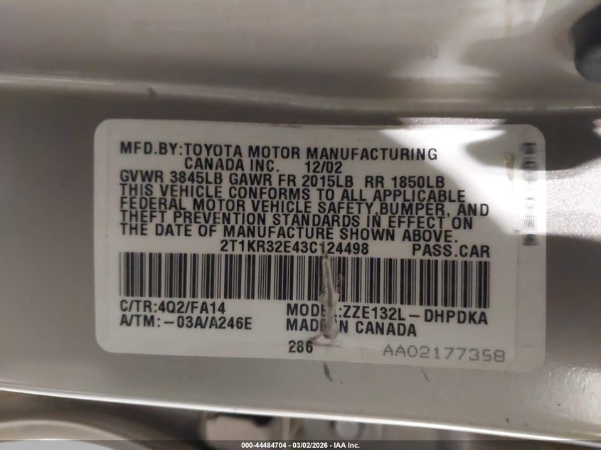 • 2T1KR32E43C124498