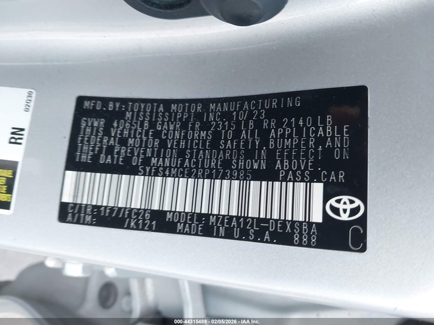 • 5YFS4MCE2RP173985