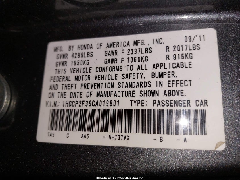 • 1HGCP2F39CA019801