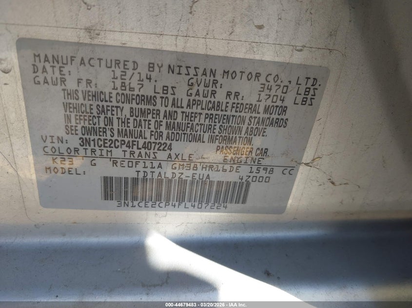 2015 NISSAN VERSA NOTE S (SR)/S PLUS/SL/SR/SV for Sale in Caldwell, ID