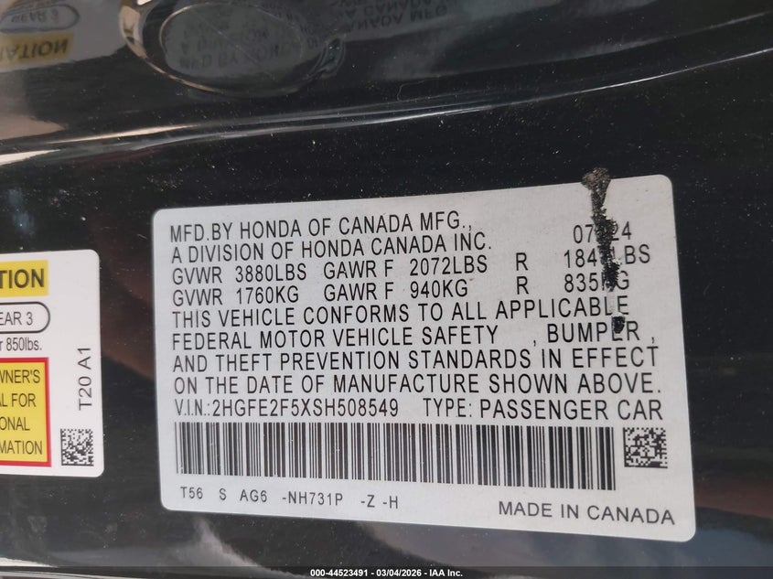 • 2HGFE2F5XSH508549
