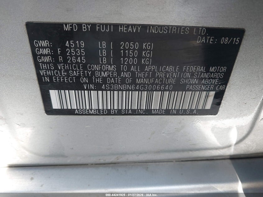 2016 SUBARU LEGACY 2.5I LIMITED for Sale in Missoula, MT