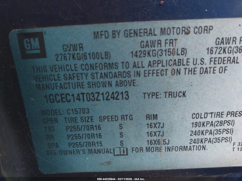 • 1GCEC14T03Z124213