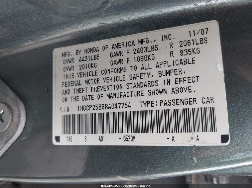 • 1HGCP25868A047754