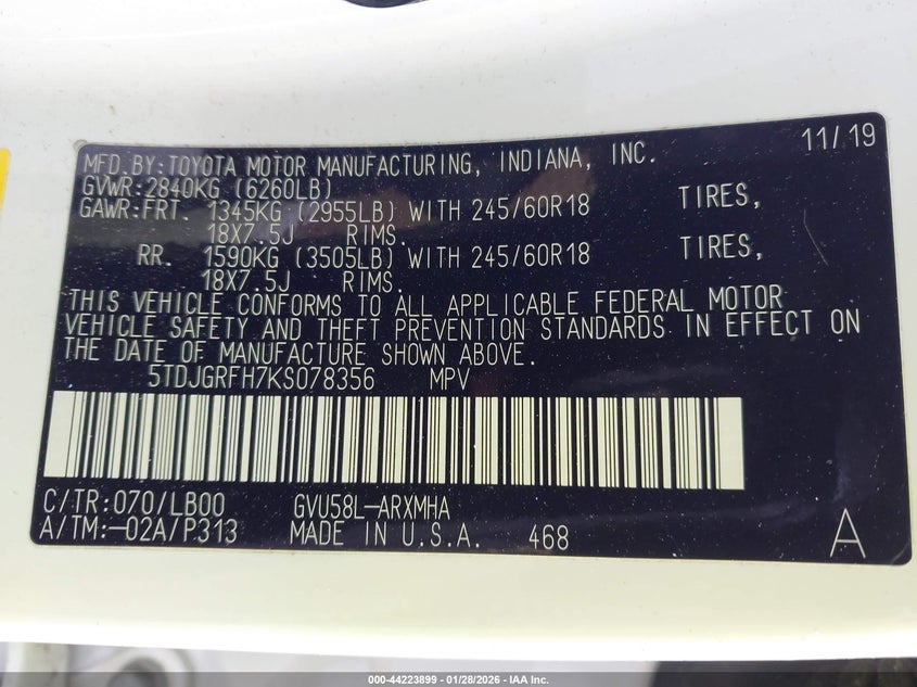 2019 TOYOTA HIGHLANDER HYBRID XLE for Sale in York Springs, PA