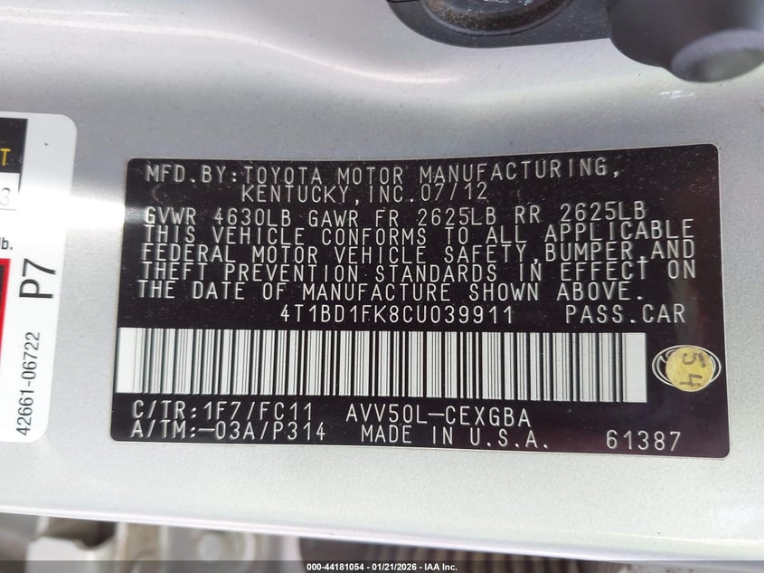 • 4T1BD1FK8CU039911