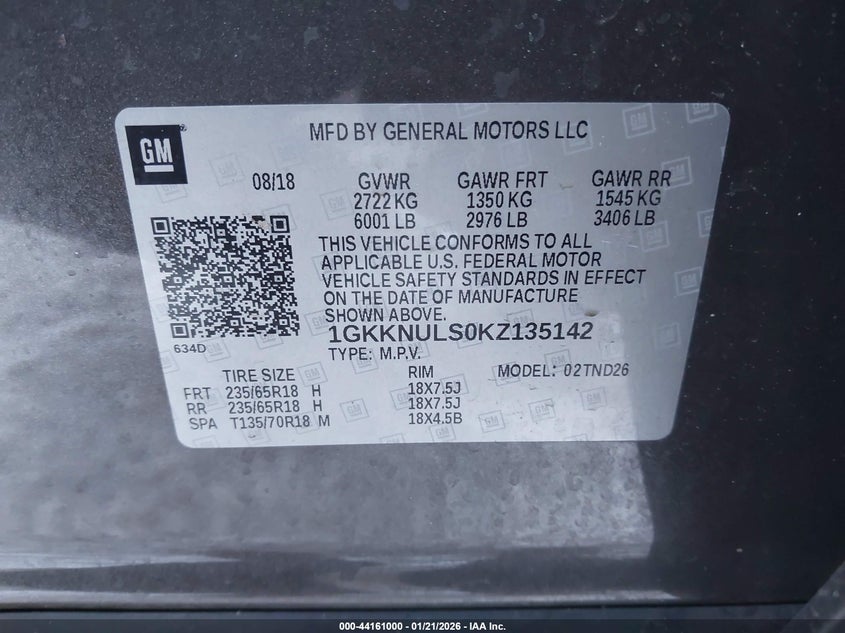 • 1GKKNULS0KZ135142