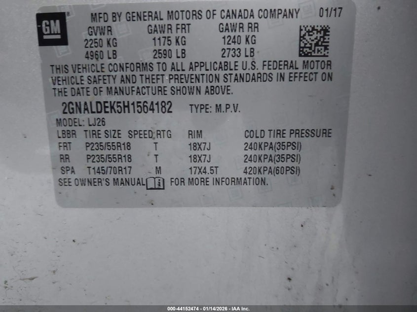 2017 CHEVROLET EQUINOX PREMIER for Sale in Grove City, OH