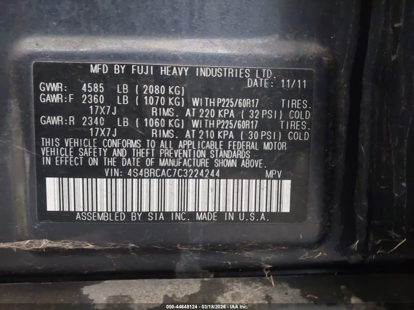 • 4S4BRCAC7C3224244