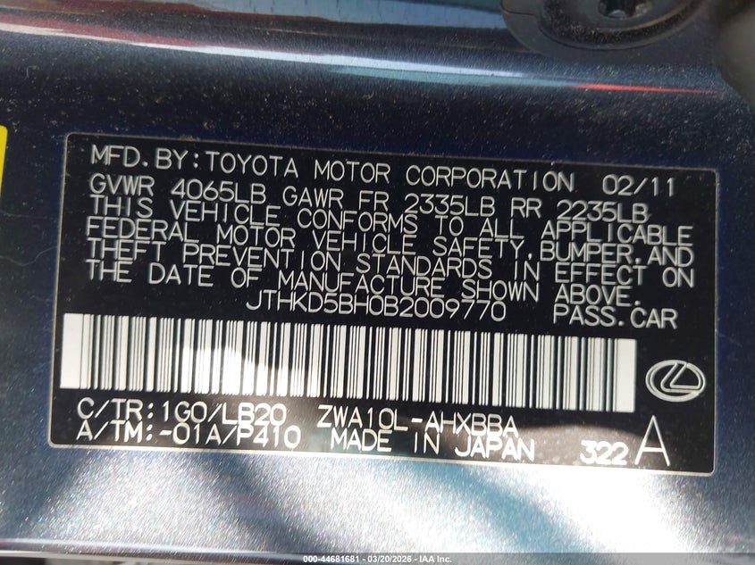 • JTHKD5BH0B2009770