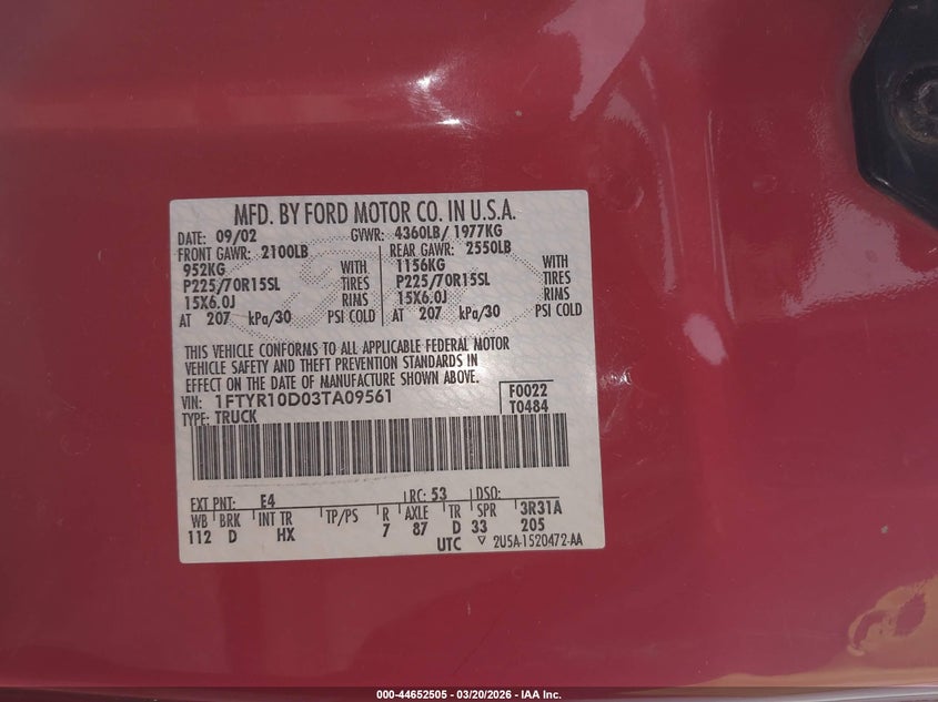 • 1FTYR10D03TA09561